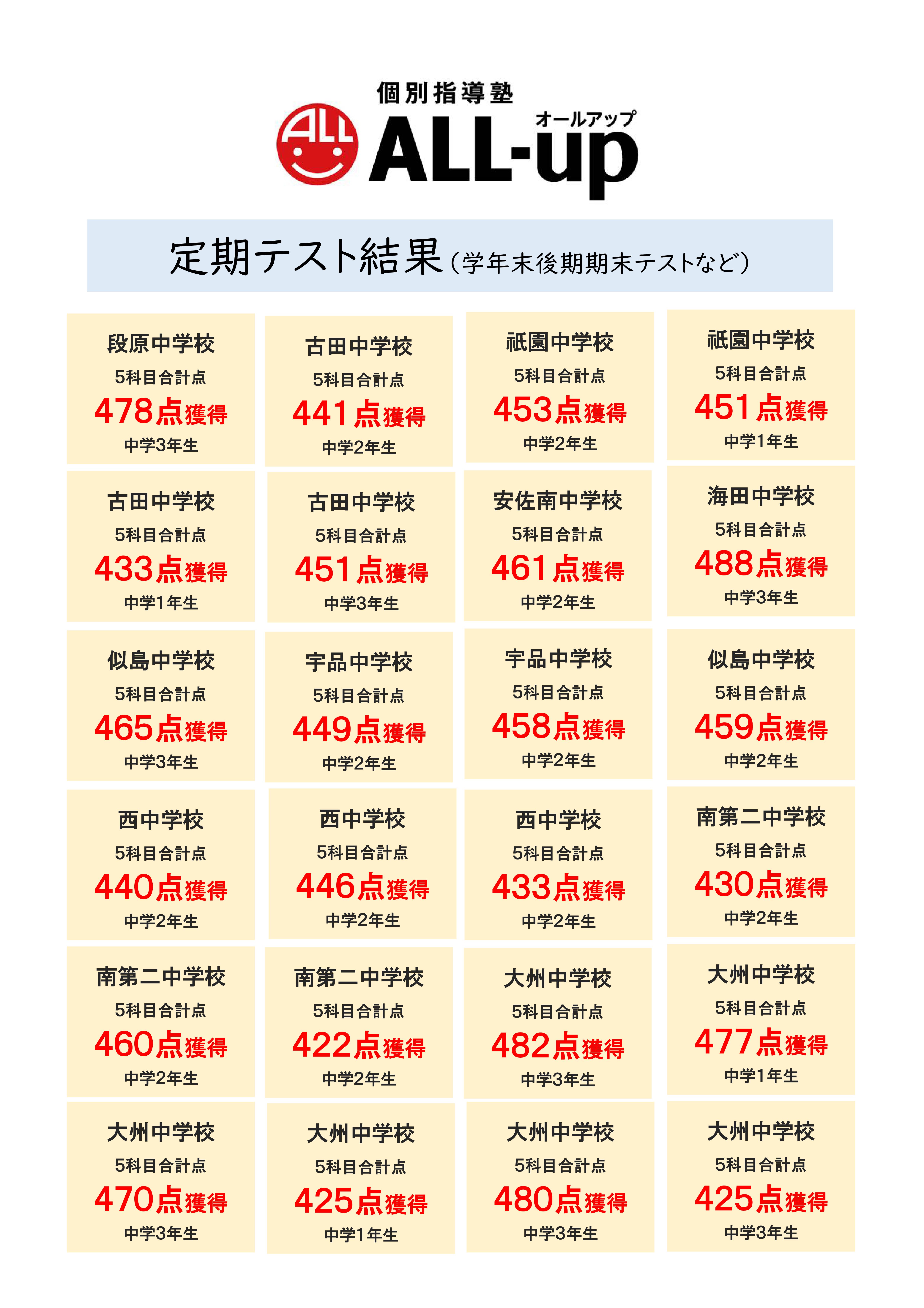 【定期テスト結果】(後期期末テスト等)みなさん、よく頑張りました!